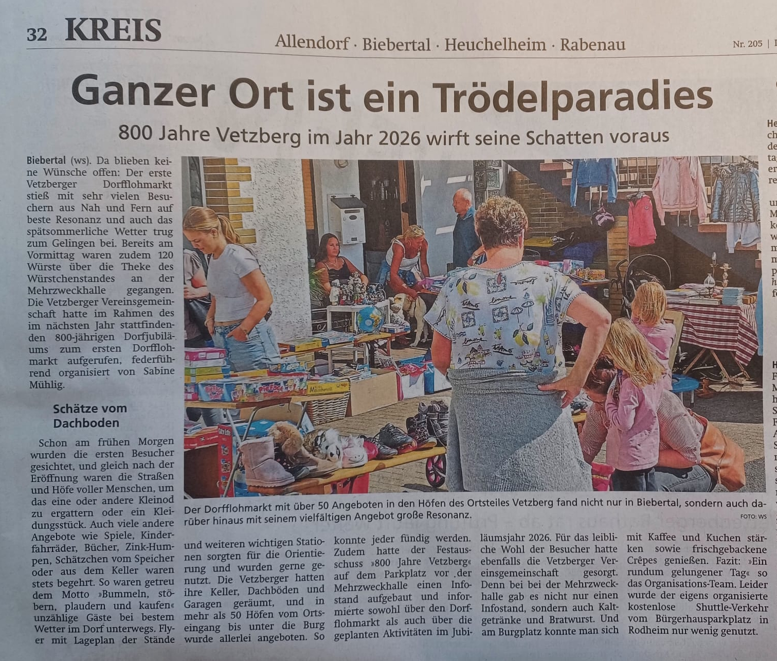 Sie sind hier: Startseite » Veranstaltungen » Dorfflohmarkt 30.08.2025 Dorfflohmarkt 30.08.2025 Leider verpasst Grafik anklicken zum Vergrößern Die Parkplätze im Ort sind begrenzt, bitte nutzt den Parkplatz am Bürgerhaus Rodheim.Von 10.00 Uhr bis 17.00 Uhr gibt es von dort einen kostenlosen Shuttle-Service nach Vetzberg und zurück.Danke schön. Zu den Bildern